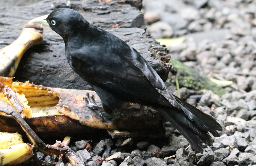 一見すると黒一色の鳥だったが、腰の辺りの内側に赤い羽が見られる。