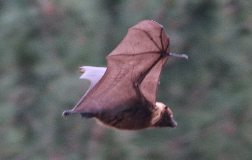 夜行性で昼間は木などにぶら下がり休んでいることが多いが、飛んでいる姿もよく見られる。